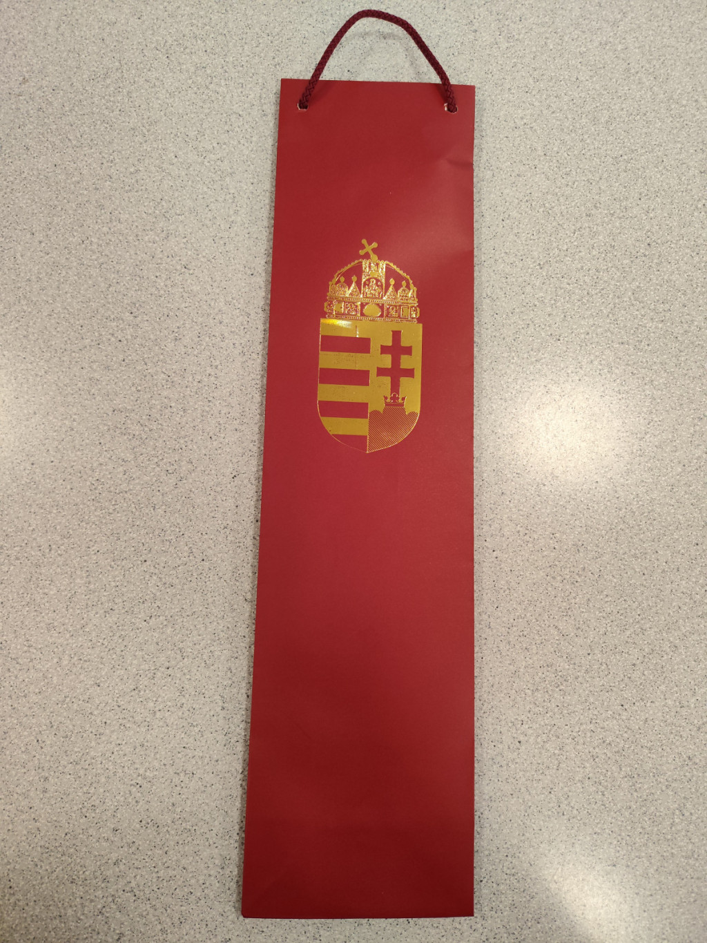 Ajándéktáska - Keskeny italos, Címeres, bordó (zsinórfüles)