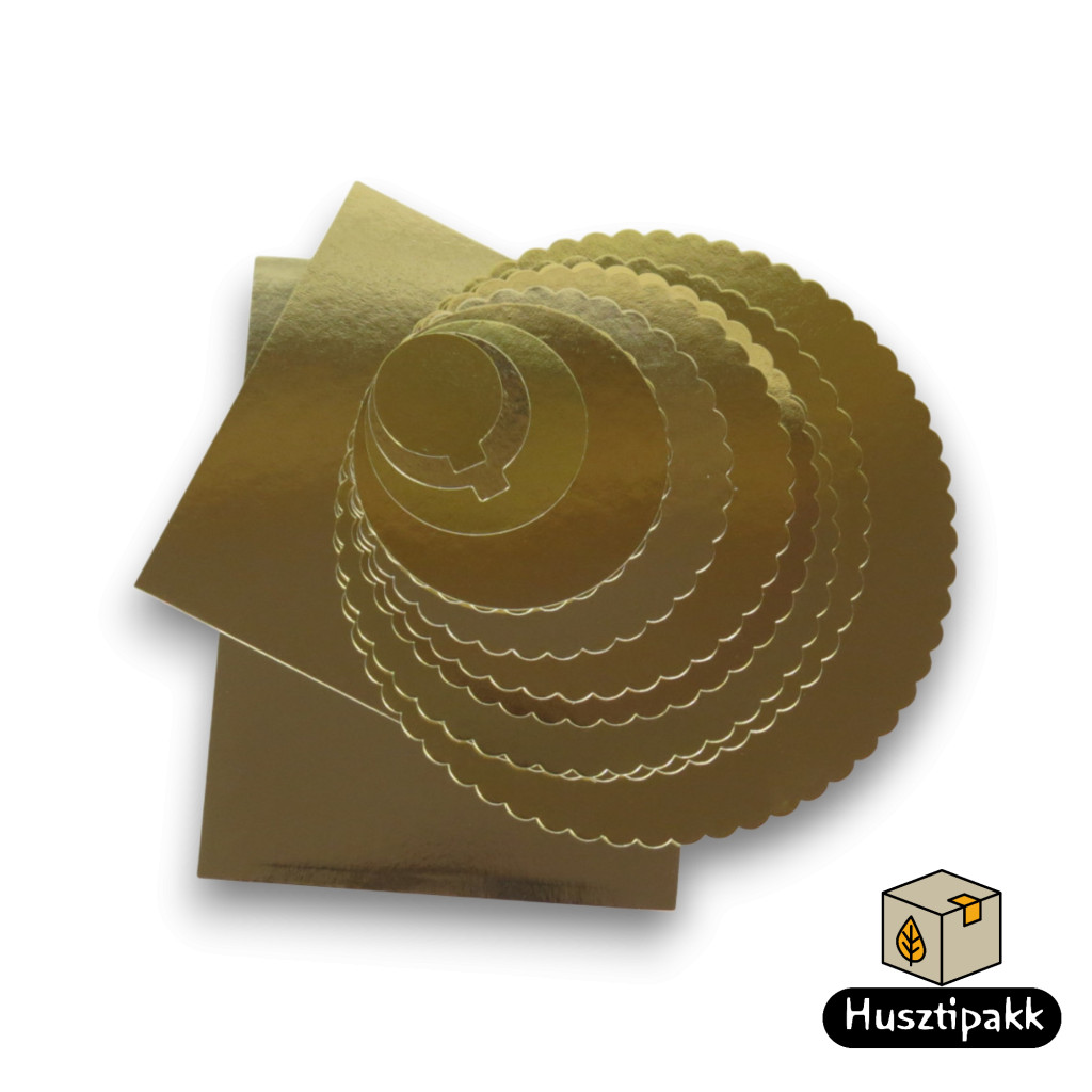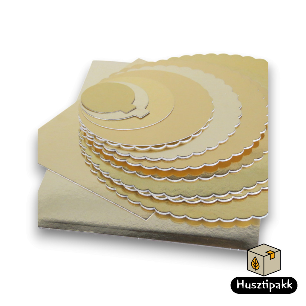 A Hullámos Szélű Prémium Tálca - Arany, 20 cm nemcsak praktikus, hanem stílusos és elegáns megoldást is nyújt tortáid és süteményeid prezentálásához. Válaszd ezt a minőségi tálcát, és emeld magasabb szintre a desszertjeid megjelenését!