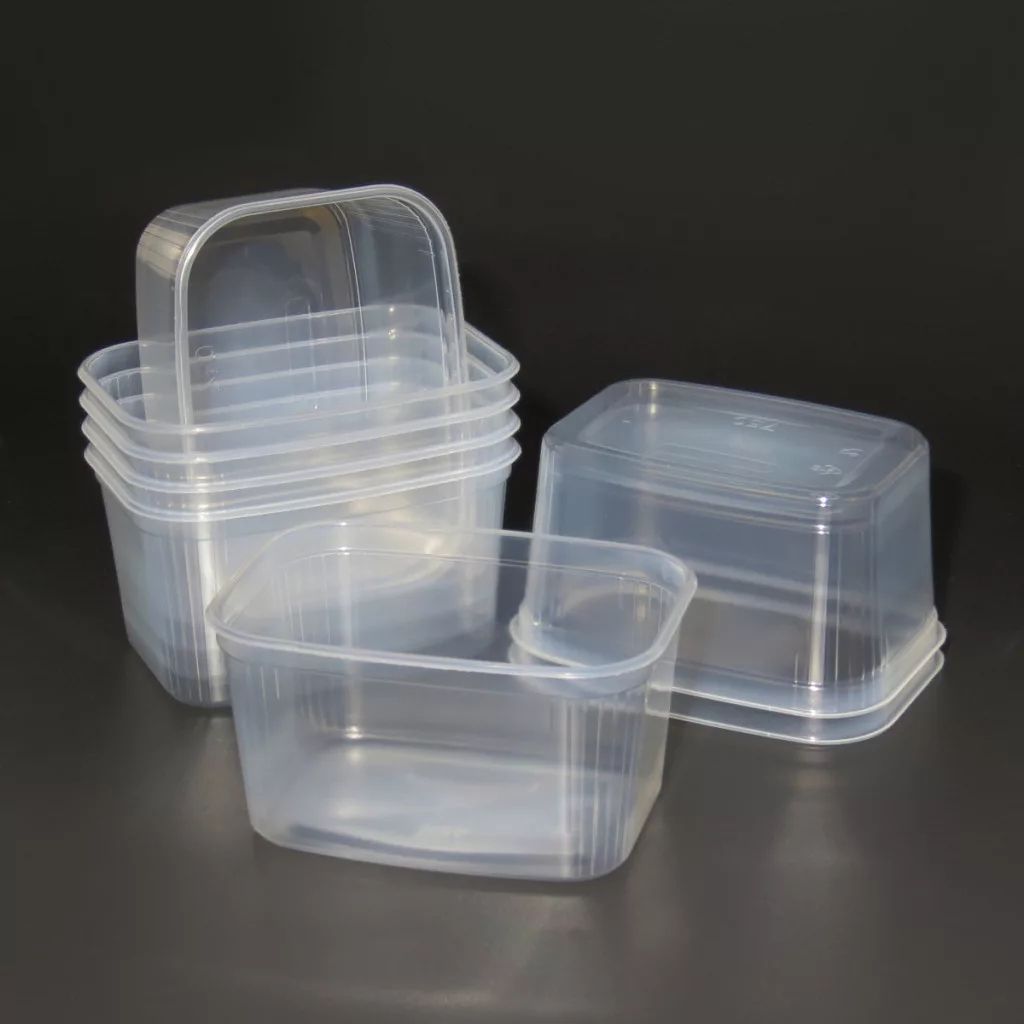 A szögletes műanyag tálak praktikus és helytakarékos megoldást kínálnak elvitelre vagy ételszállításra.