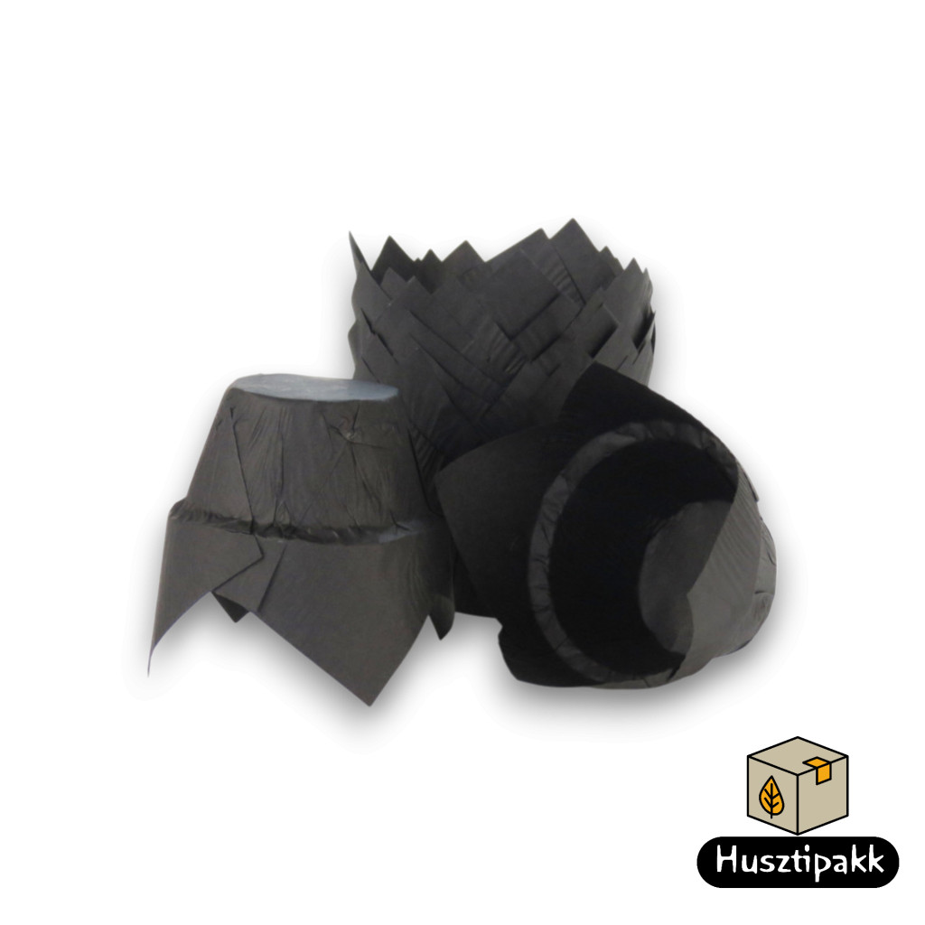 A Lótusz Sütőforma - Fekete, 120 db egy kiváló minőségű, papírból (50 g/m²) készült sütőforma, amely kifejezetten különleges sütemények és torták sütéséhez terveztek. A forma fekete színű, lótusz mintájú designjével luxus megjelenést kölcsönöz süteményeidnek. A forma alapja 50 mm átmérőjű, kiterítve pedig 160x160 mm méretű, így tökéletesen formázott és egyenletesen sült sütemények készíthetők. A forma süthető mikrohullámú és hagyományos sütőben is (maximum 220°C-ig), így sokoldalúan használható. A csomagban 120 db forma található, ami ideális nagyobb mennyiségű sütéshez vagy rendezvényekhez.