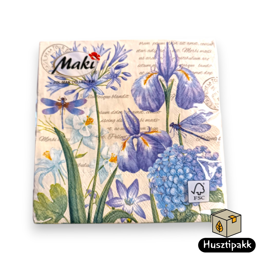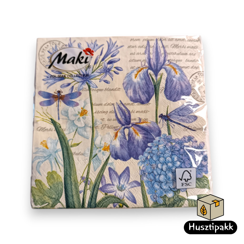 Ez a koktél szalvéta íriszvirágok és szöveg mintával díszítve, amely tökéletes választás partikra, koktélbárokba vagy otthoni összejövetelekre. A 25x25 cm-es méret ideális italok és kis falatok számára. A csomagolás 20 darabot tartalmaz, ami kiválóan alkalmas közepes méretű eseményekhez. A szalvéta minőségi anyagból készült, amely biztosítja a tartósságot és a stílusos megjelenést.